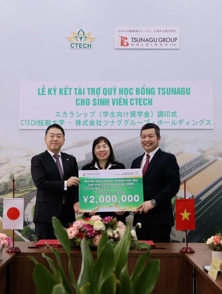 Theo đó, Tập đoàn Tsunagu đã chọn CTECH là đơn vị đầu tiên trên thế giới cho kế hoạch triển khai Quỹ Học bổng Toàn cầu Tsunagu. Dựa trên sứ mệnh hỗ trợ tài chính cho những sinh viên có thành tích học tập tốt và sinh viên có hoàn cảnh khó khăn ở Việt Nam, Tsunagu Group cam kết đồng hành và chắp cánh cho tương lai của các em.