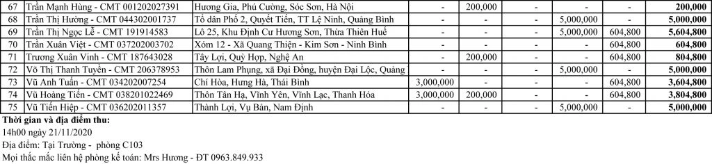 Thông báo về việc thu tiền K11